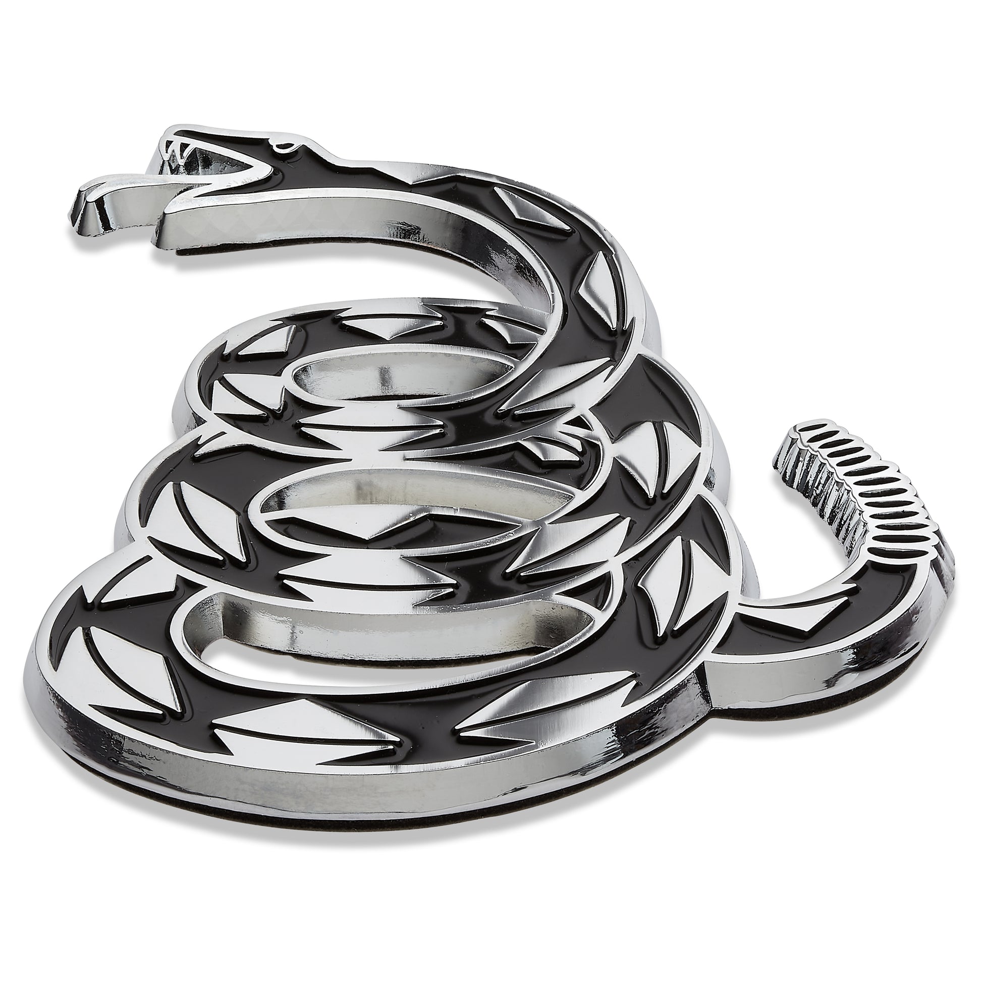 Gadsden "Don't Tread On Me” Rattlesnake Metal Car Emblem (Chrome/Black)