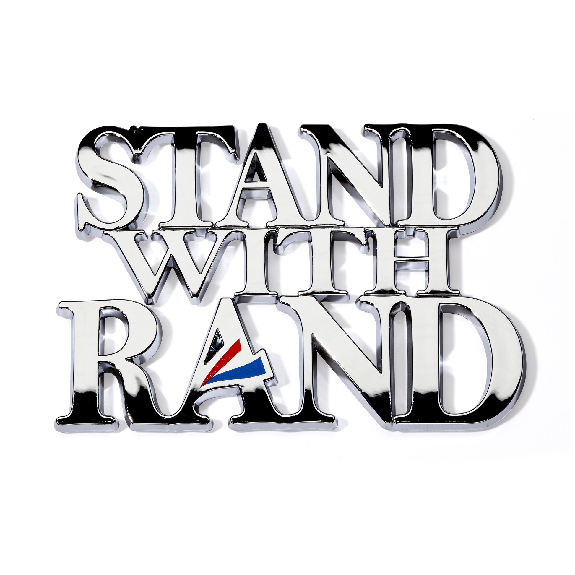 This Stand With Rand premium quality auto emblem features shiny chrome with red and blue accents, 3-D curved top surface, triple chrome-plated metal finish, a lightweight yet durable automotive grade ABS plastic core, and paint-safe peel 'n' stick foam tape on the backside for easy mounting to your car or other surface. The automotive grade ABS plastic core and triple chrome plating ensure this emblem will last the lifetime of your car. Holds up to high pressure washing without chipping or peeling off. A premium emblem to show your support for Rand Paul, liberty and the Constitution. Get the classy alternative to bumper stickers. Made in America. Emblem measures 3.50" wide by 2.75" tall.